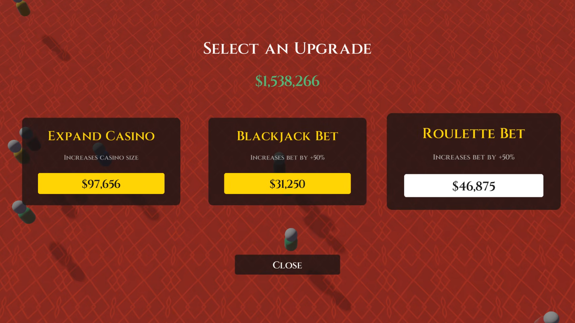 Build a casino that generates thousands of dollars every second in this incremental/tycoon-style game.